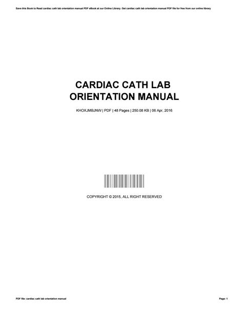 Read CARDIAC CATH LAB ORIENTATION MANUAL Epub