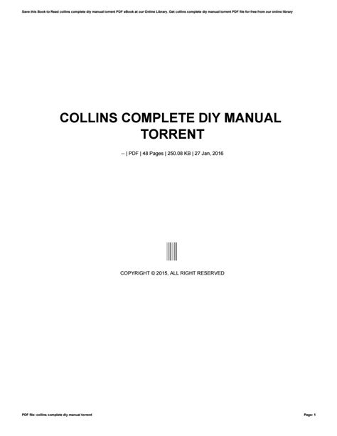 Read Online COLLINS DIY MANUAL PDF TORRENT Kindle Editon